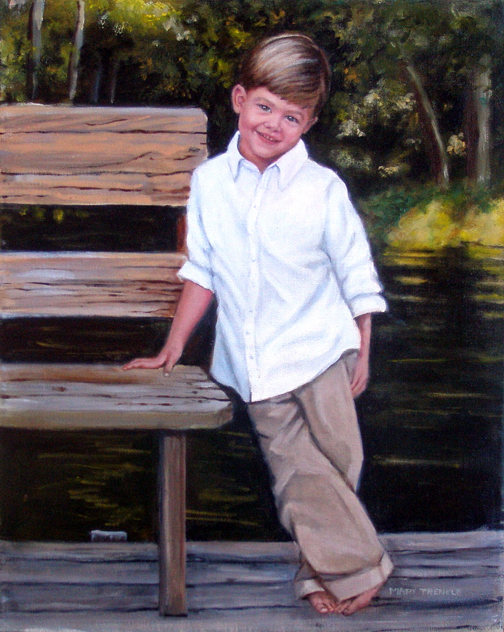 | Mary, I will certainly refer you to my family and friends. And again, thank you so much words can not express my gratitude. When I pulled the painting out of the box I was so over whelmed with joy that I got teary eyed. You did an exceptional job. The painting is simply beautiful. And I will definitely be calling you again to do a portrait of my three children. |